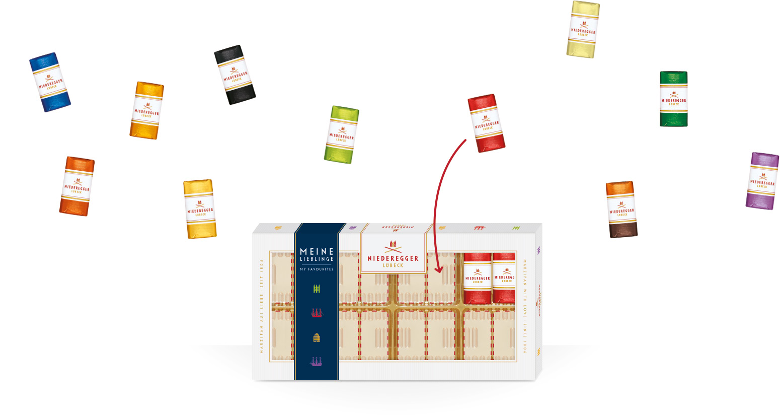 2 Befülle die Verpackung individuell durch Anklicken deiner Lieblingssorten.